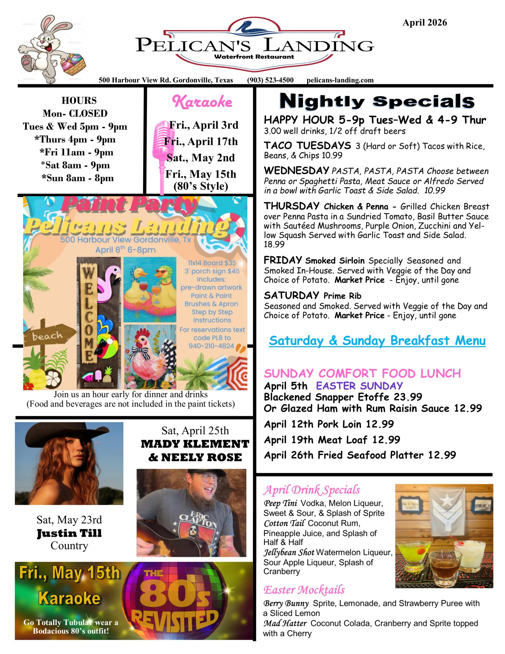 Pelican’s Landing Waterfront Restaurant Newsletter
